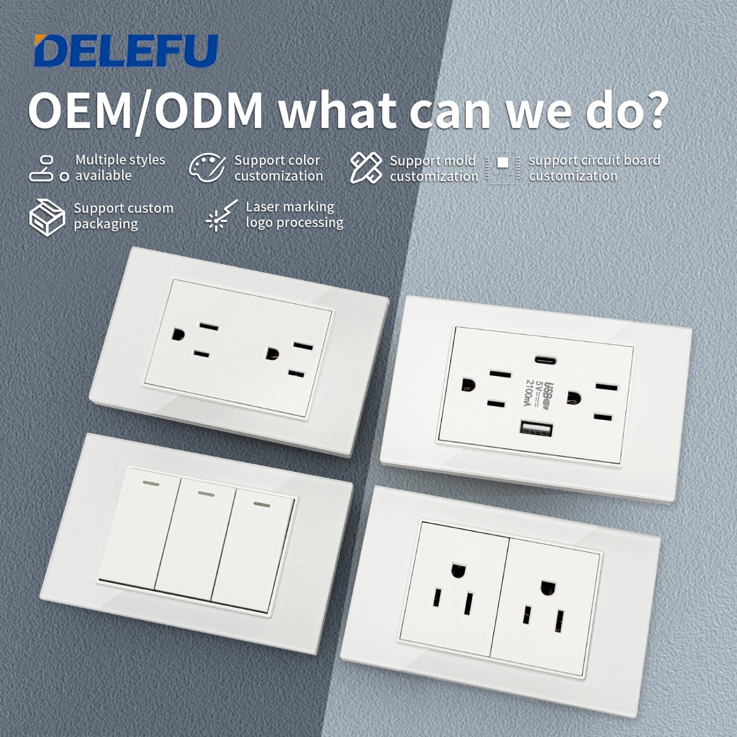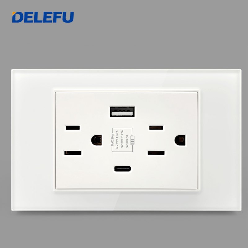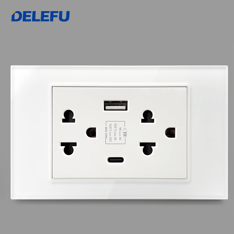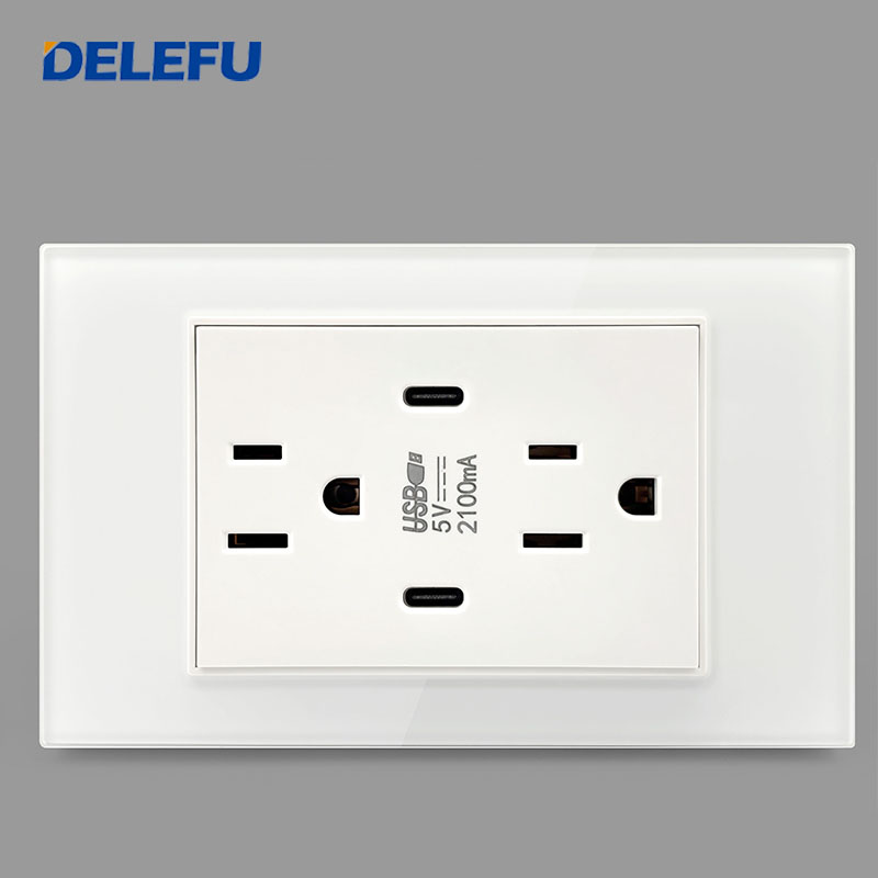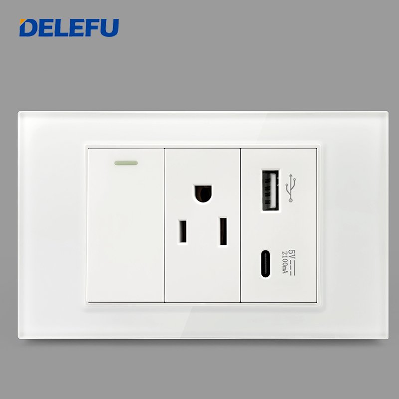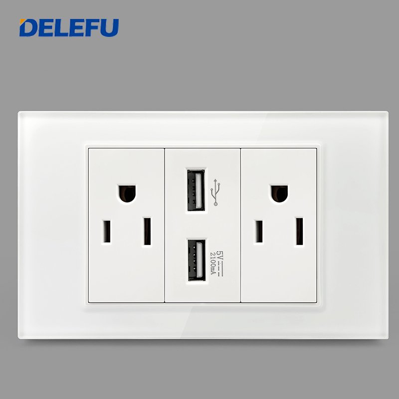 DELEFU white tempered glass universal serial bus American standard socket Mexican American plug 118 * 72 wall power socket light switch fast charging