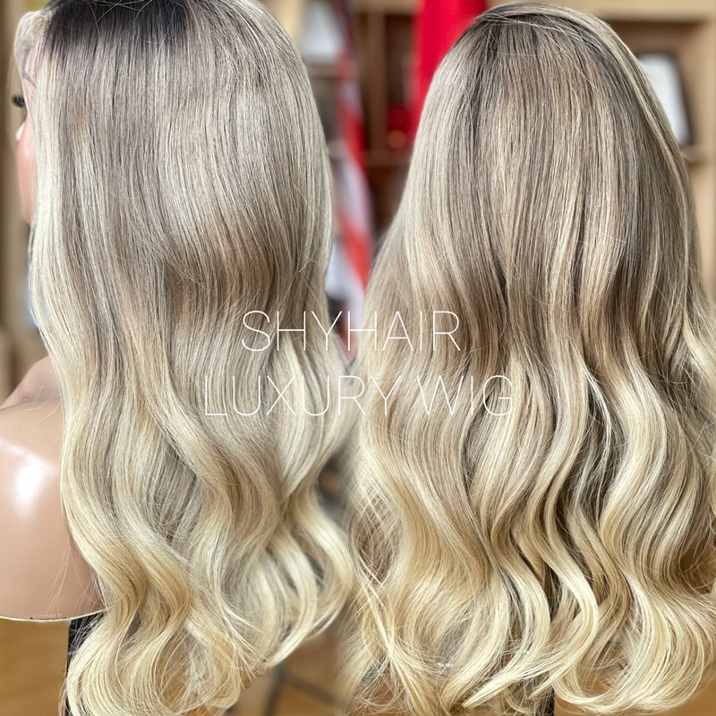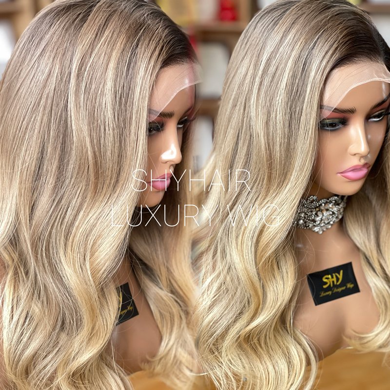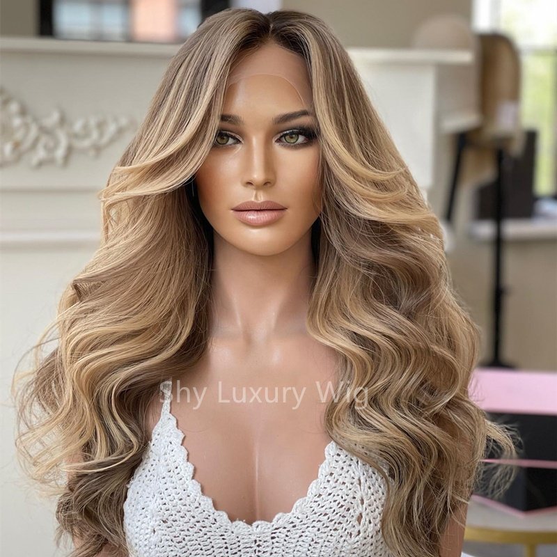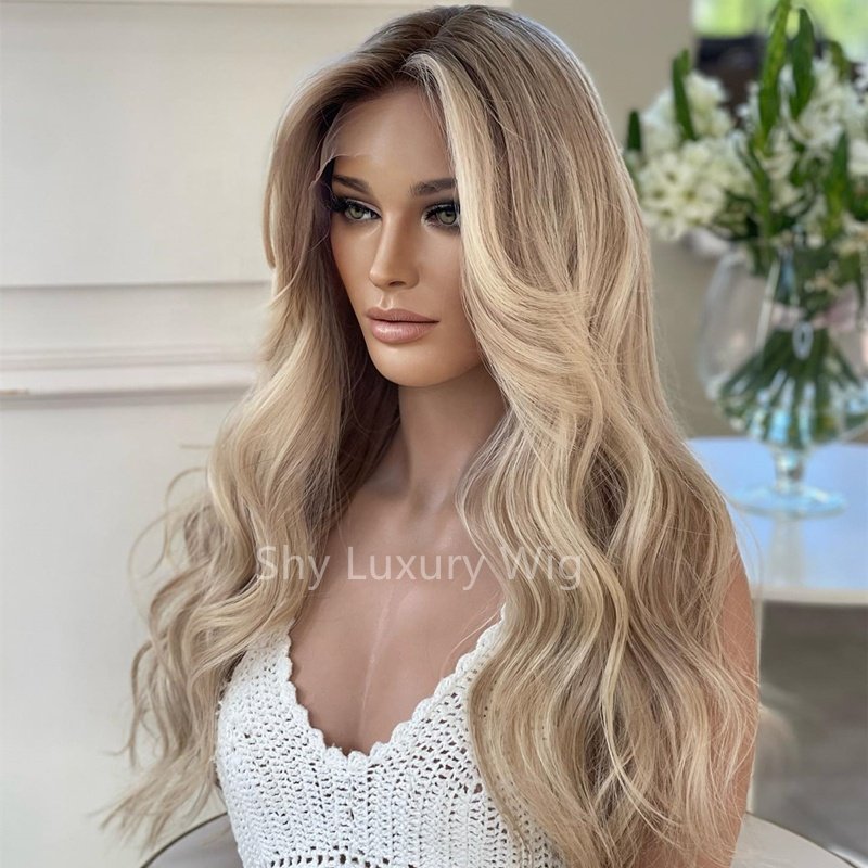 Transparent high-definition lace wig for baby hair with no glue, blonde wavy French lace, 150% density, 22 inches