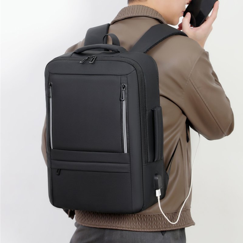 Customized logo, multifunctional polyurethane leather, expandable laptop, men's backpack, waterproof business computer, travel backpack with USB