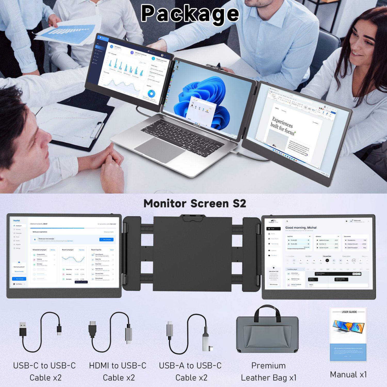 OEM S2 Triple Portable Laptop Screen Extender Monitor 14-inch FHD 1080P IPS Dual Screen Portable Laptop Screen Extender