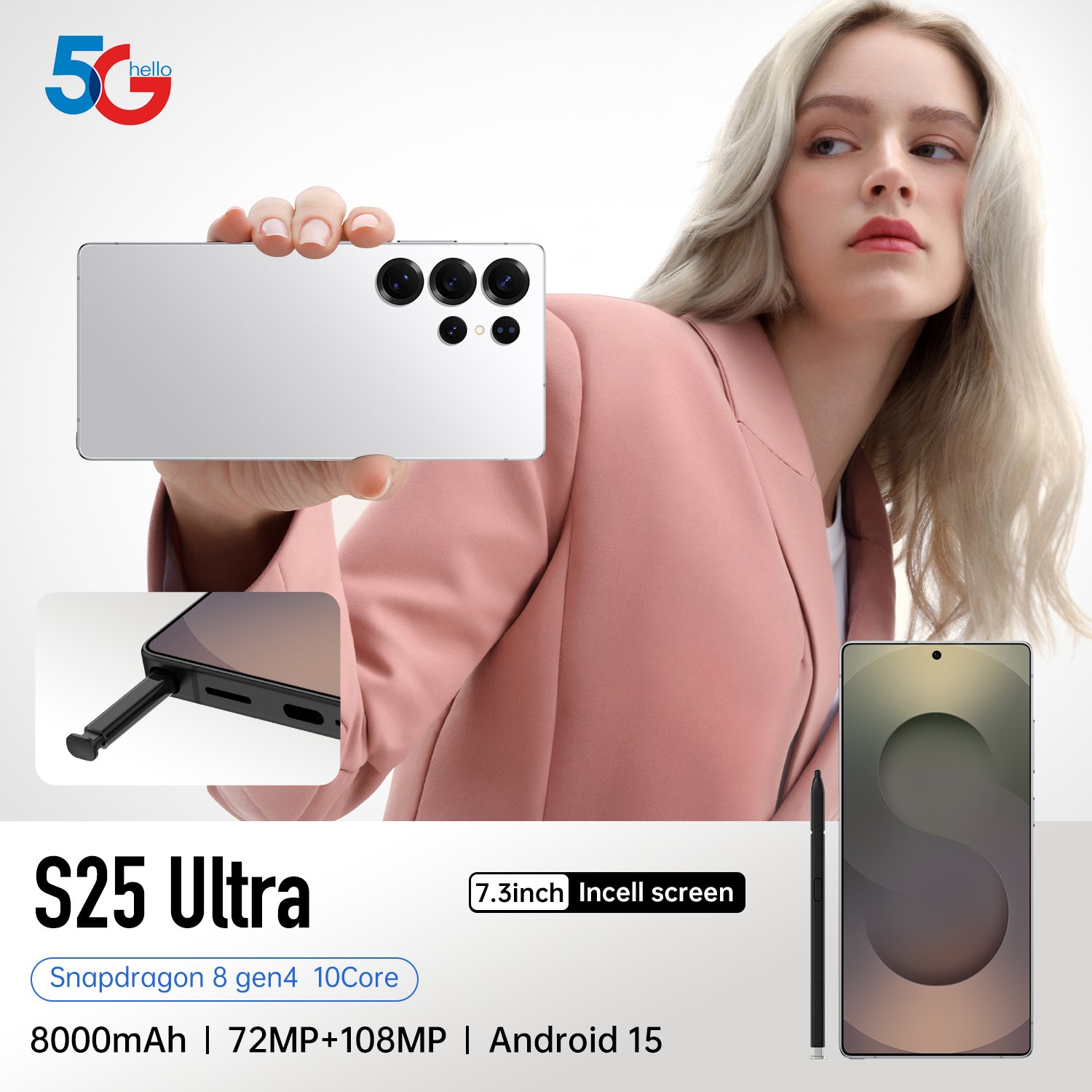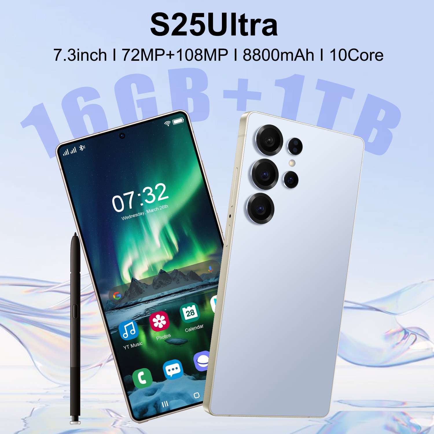 GalaxS S25 Ultra 7.3 HD 5G Smartphone Original Android Phone 16GB+1TB Dual SIM 8000mAh 72MP+108MP Ten Core Code Division Multiple Access Technology