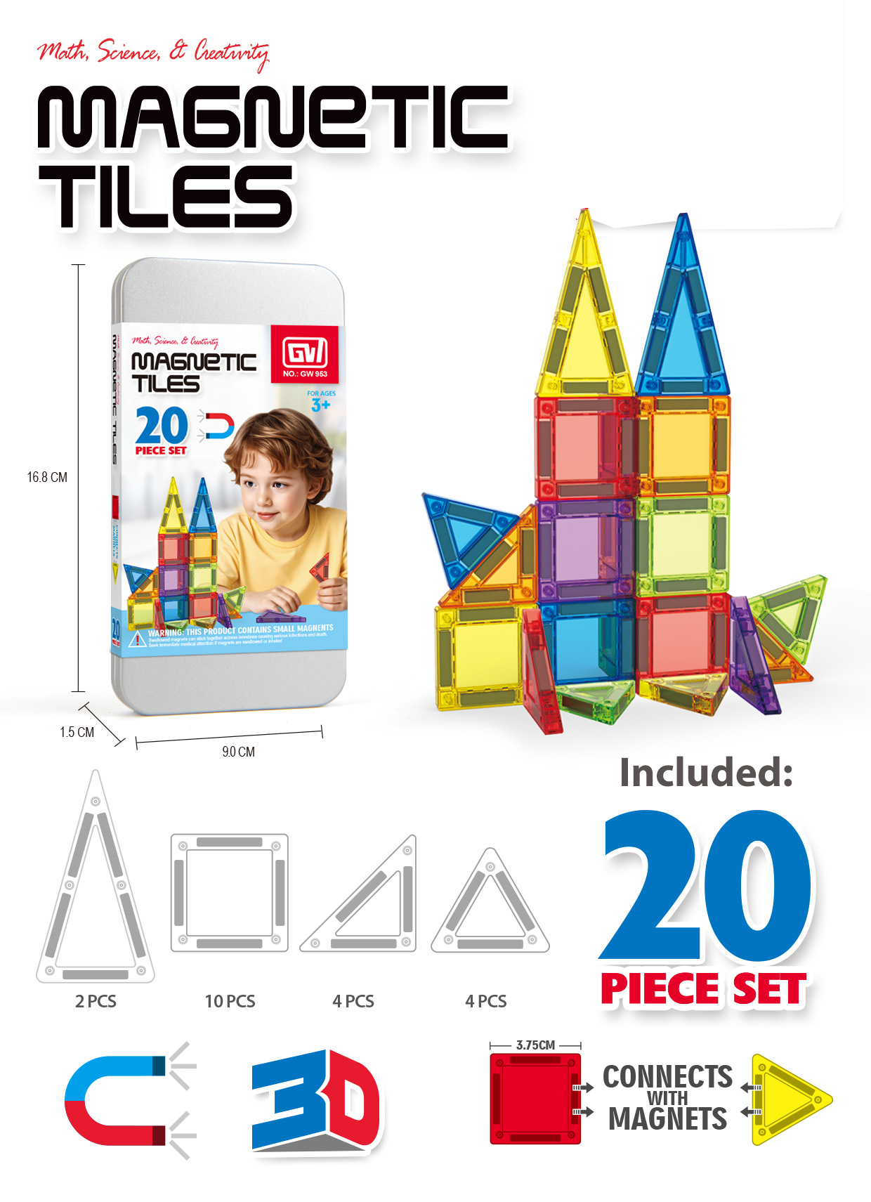 2025 Trend: 60-Piece Tin Box Magnetic Building Blocks Portable Magnetic Tile Toy Travel Set for Toddlers and Children