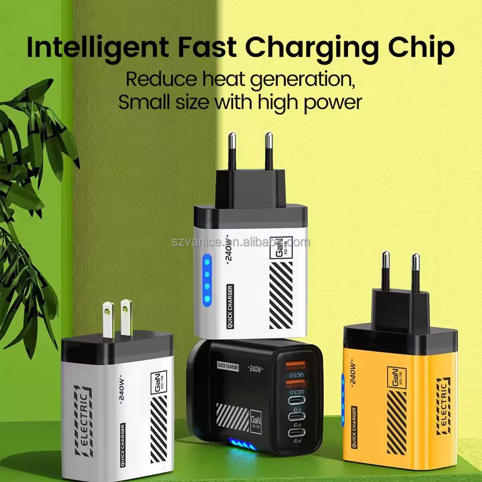 5-port 240W USB-C wall charger for fast charging 3.0 240W Type-C USB C mobile phone charger for fast charging travel adapter