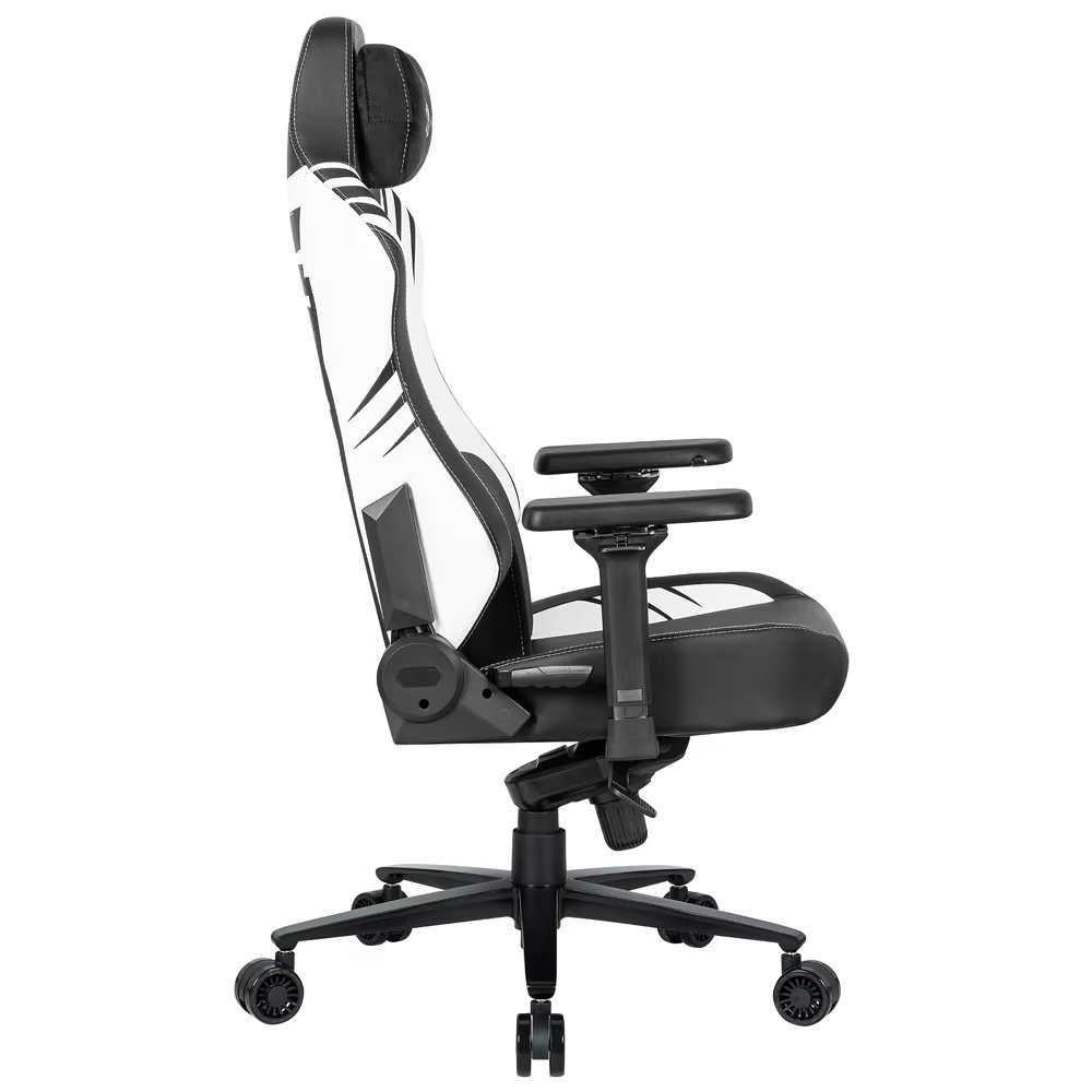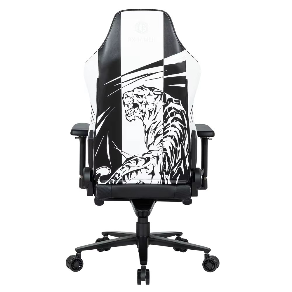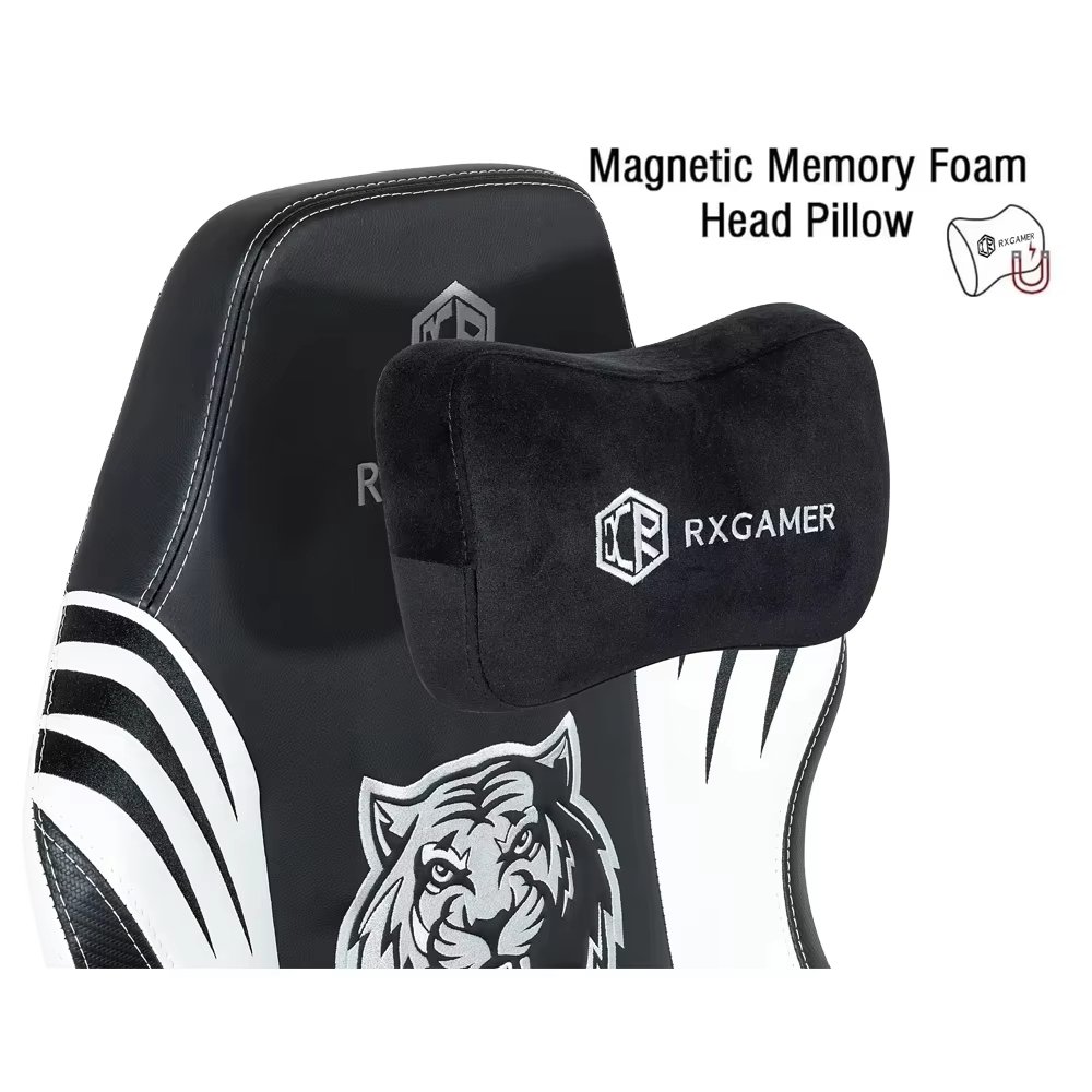 Customized black synthetic leather racing style esports chair with 4D armrests and magnetic headrests that can be extended, massaged, and rotated