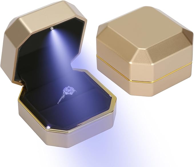 2026 High quality luxury gold OEM ODM customized brand logo LED jewelry box light, can accommodate rings