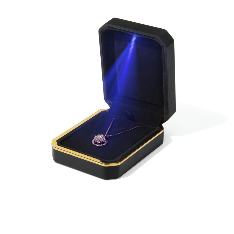 2026 Fashion Luxury Black OEM ODM Customized Brand Logo Square hinge Closed LED01B Valentine's Day Jewelry Box Necklace Box