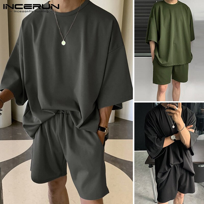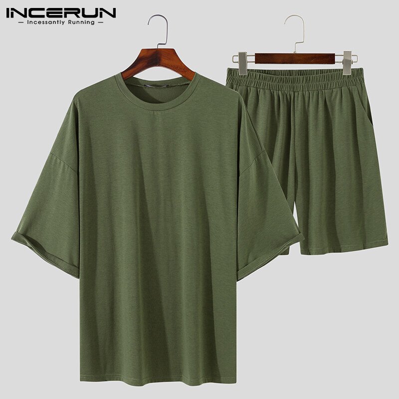 Beehoo INCERUN Mens Short Sleeve Soft Pajamas T Shirt Shorts Suits Sleepwear Suits Lounge Sets
