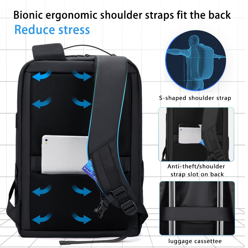FENRUIEN Business Fashion Bag Charging Custom Men's USB Anti theft Travel Intelligent Waterproof 17.3-inch Laptop Backpack